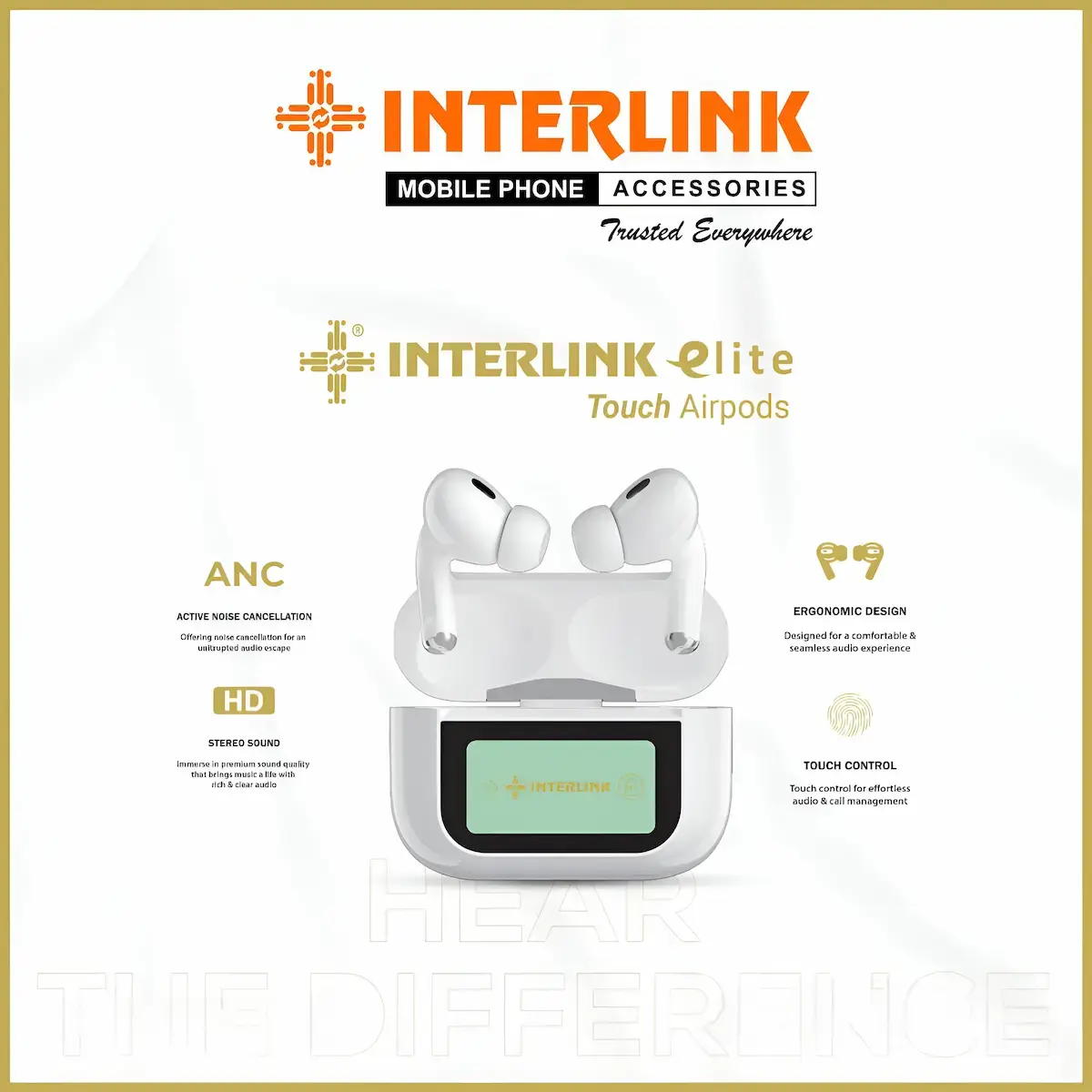 The Interlink Touch Screen AirPods offer a premium experience with a built-in LCD touch display, active noise cancellation, Bluetooth 5.3, and wireless charging—all at an affordable price. With 6-hour battery life, HD sound, and smart controls, they’re a stylish and functional choice for everyday use.